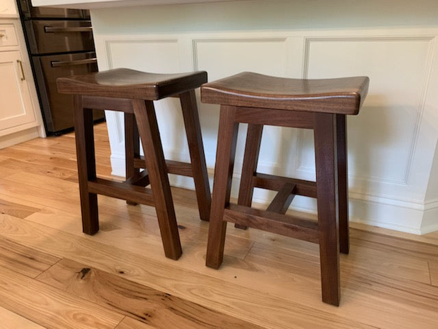 Ergonomic Saddle Seat Design: The contoured saddle seat of these stools is designed for comfort and style. Its ergonomic shape encourages good posture and provides a comfortable sit, making it perfect for extended use at a kitchen counter or workbench.
